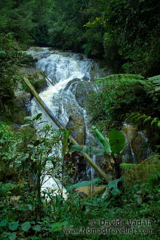 Until this point we passed along some rural houses, we prepared long sticks to boost our confidence while surpassing some stray dogs and stop for a few moments to take a picture (just documentation, nothing worth going on purpose for) of Robinson Waterfall on the opposite side. The track was slippery, not steep, mostly flat but the sticks still proved to be useful. We had our Lonely Planet guide with us, and the suggestion we found there was to take the path 9A, since the path 9 had a closed door in front, and seemed to go along a water pipe, not scenic at all.