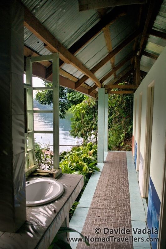 Strangely there was also a backdoor, possibly built for a future expansion of the resort, or just for the enjoyment of the guests sitting with the door open while reading a book. Or why not, even diving in the lake directly from the bed! For the lazy one, it could be also a possible alternative for a night call to the toilet, instead of challenging your balance skills on the unstable platform immersed in the dark still night.